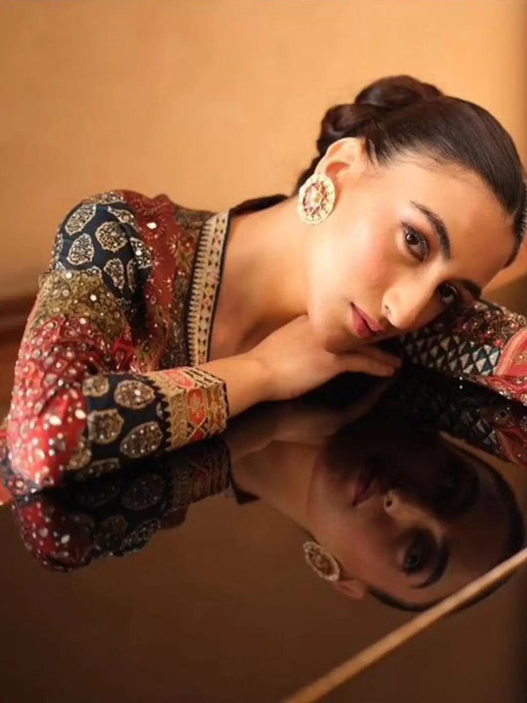 Crafted from luxurious georgette silk, this beautiful designer gown comes with a matching jacket/koti for a stylish and sophisticated look. The lightweight and smooth fabric drapes elegantly, making you feel comfortable and confident at any event or occasion