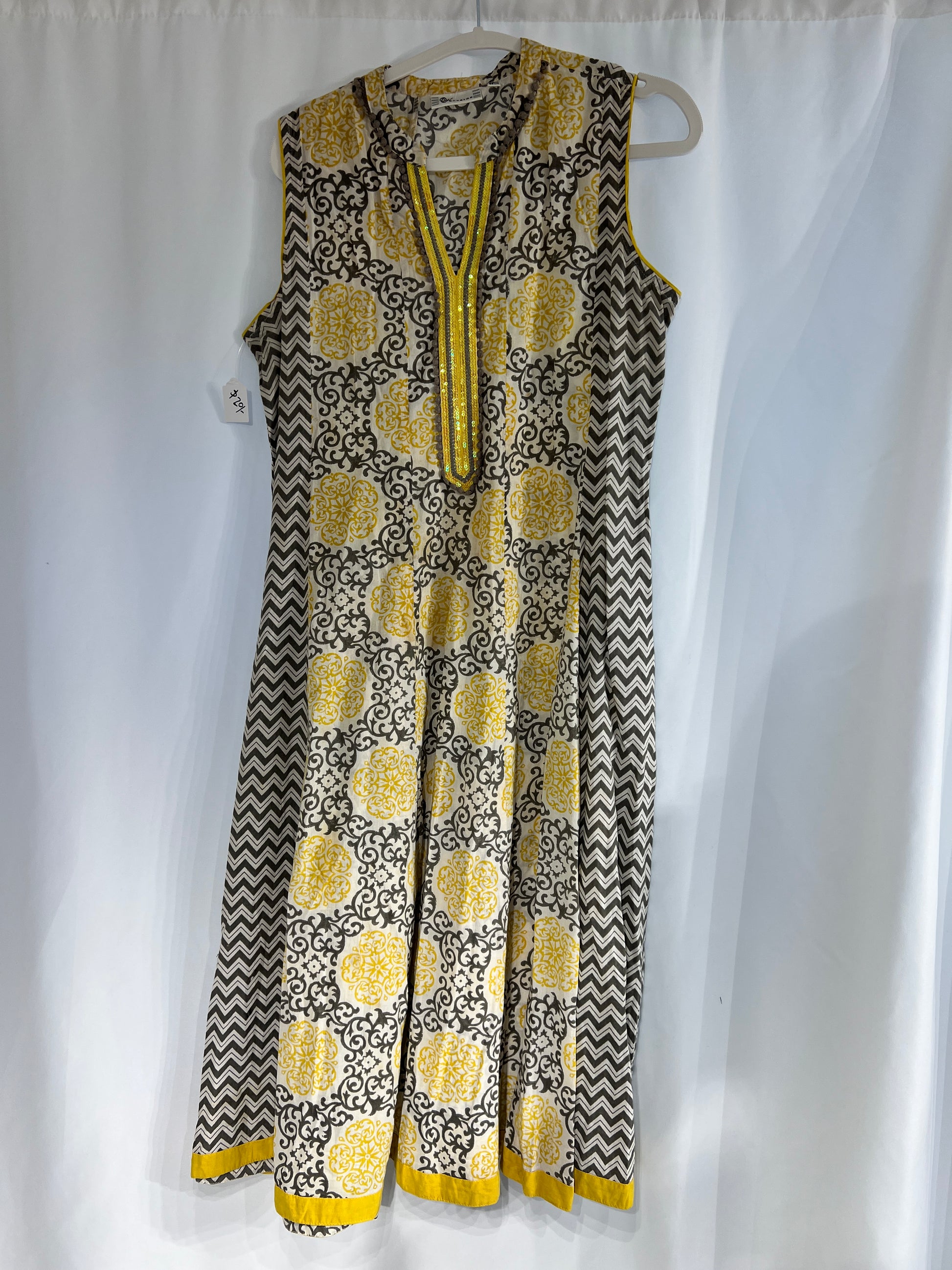 Printed yellow black cotton long kurti